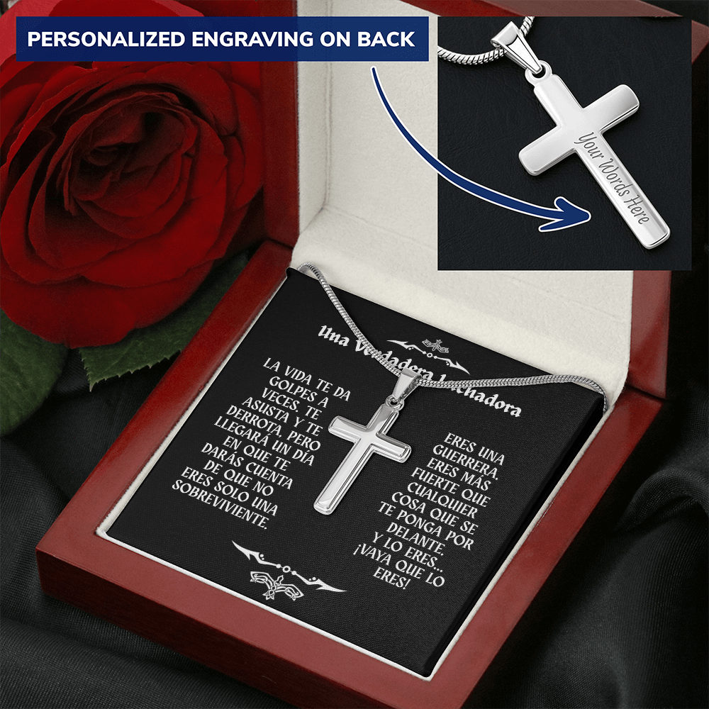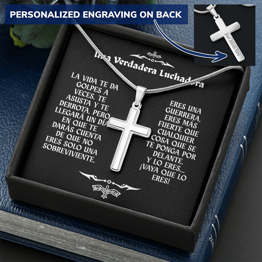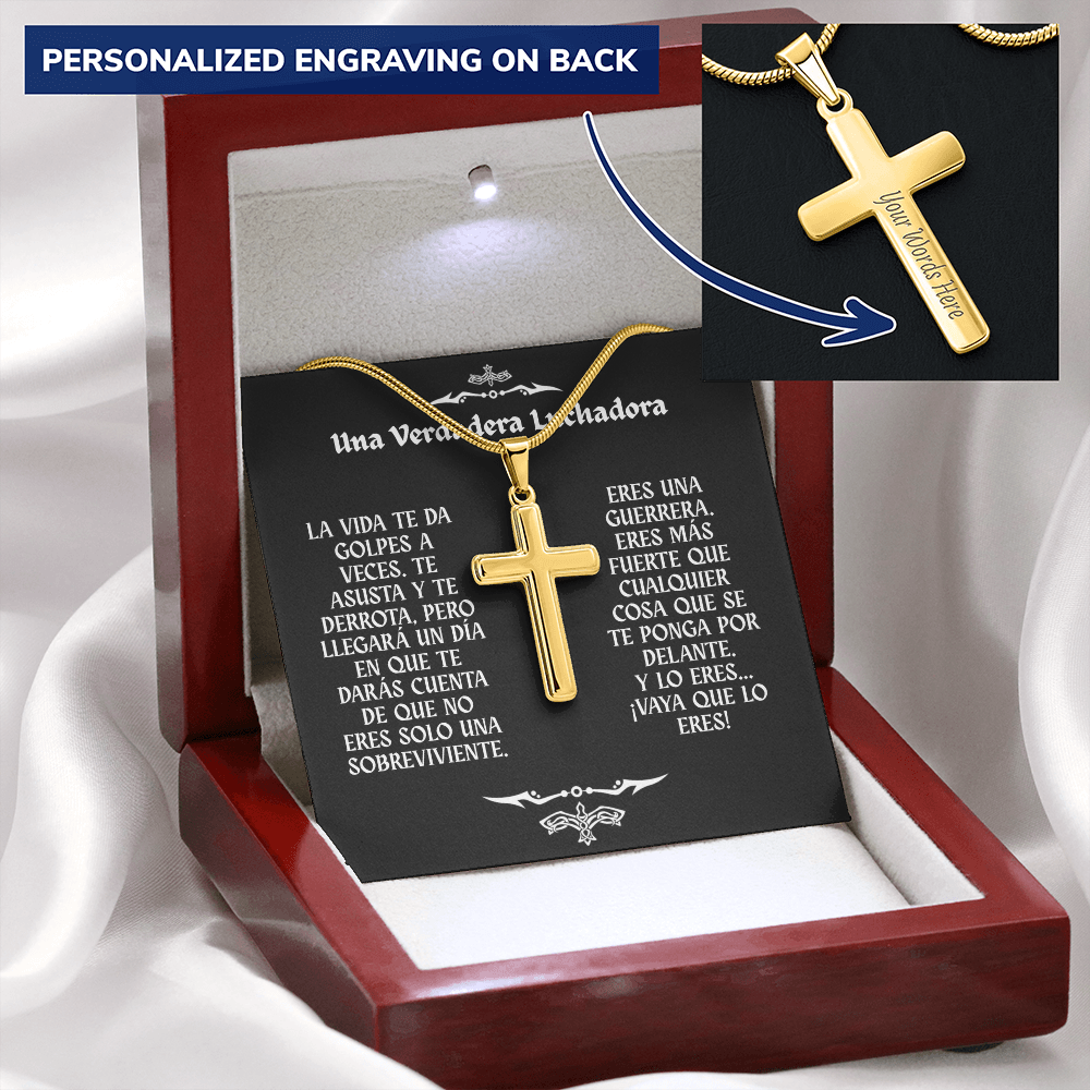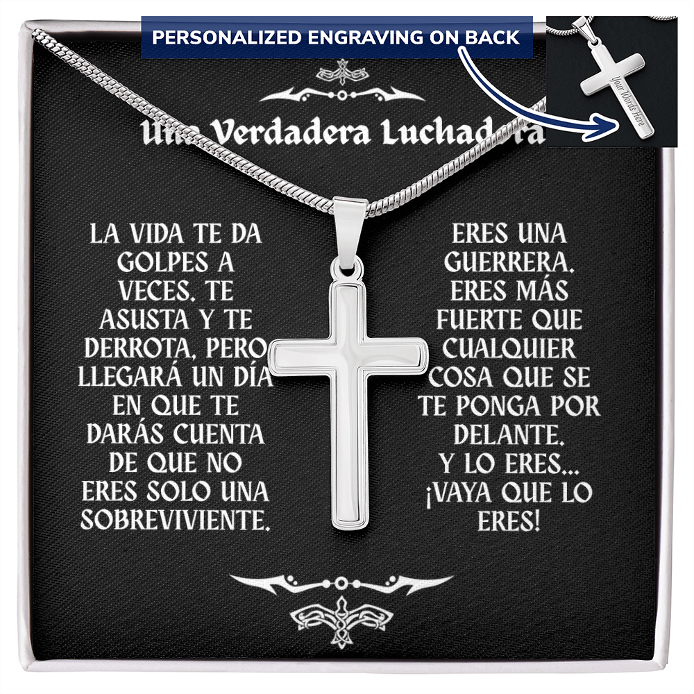 Collar con Cruz y Mensaje en Español - Una Verdadera Luchadora - Regalo para Mujer