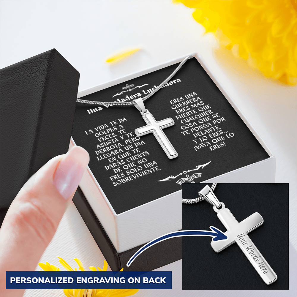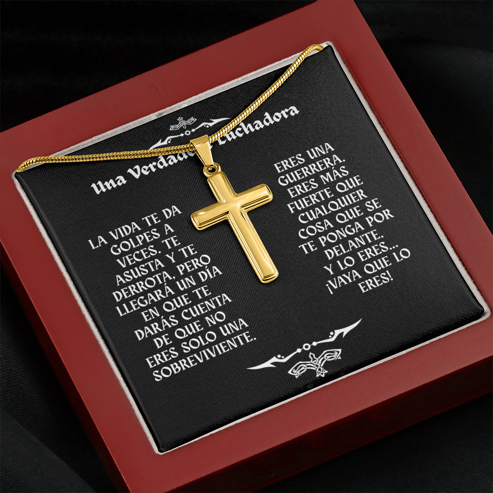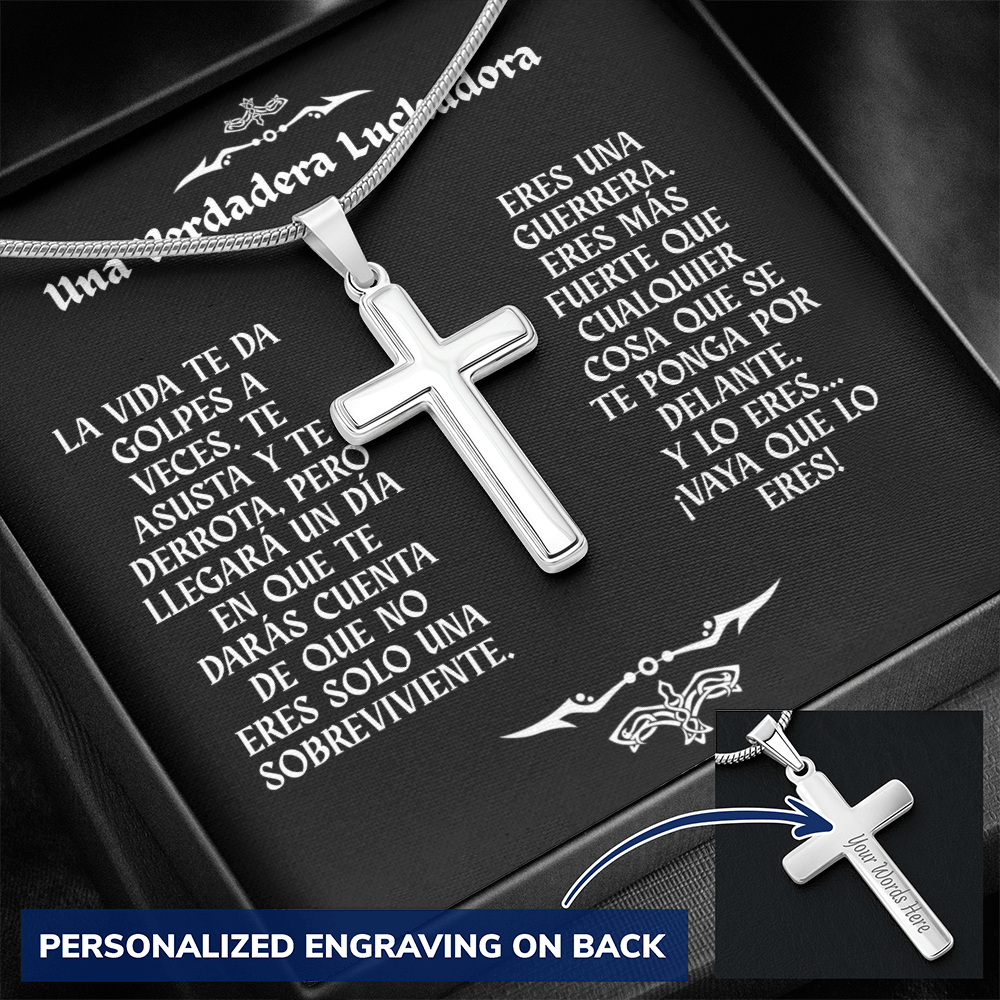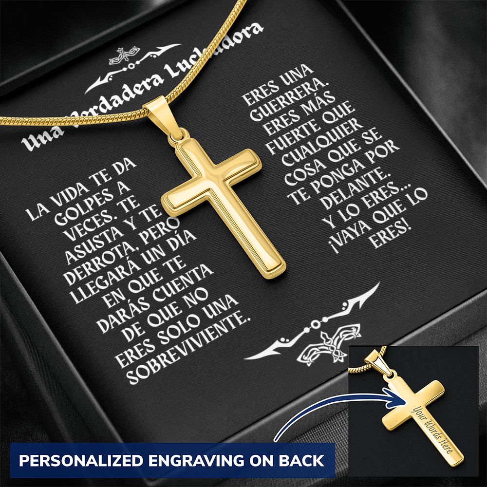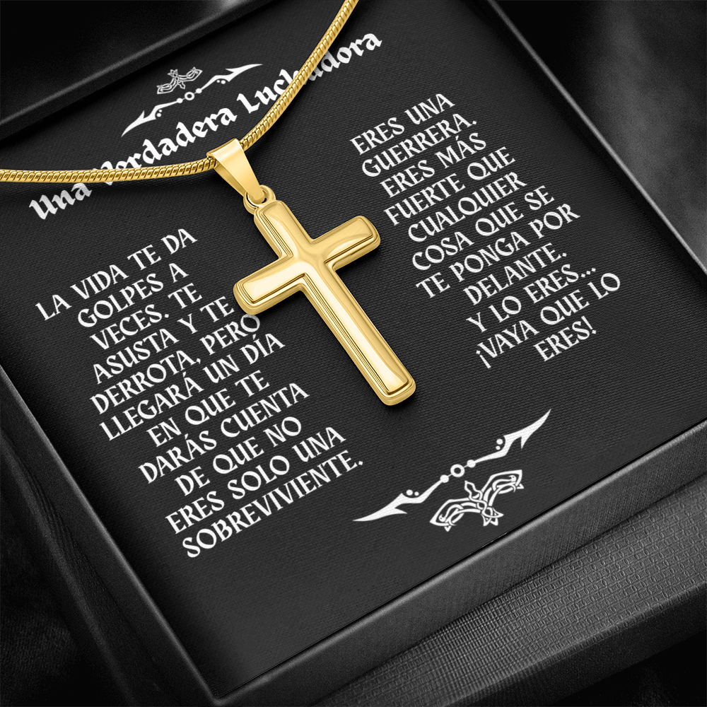 Collar con Cruz y Mensaje en Español - Una Verdadera Luchadora - Regalo para Mujer
